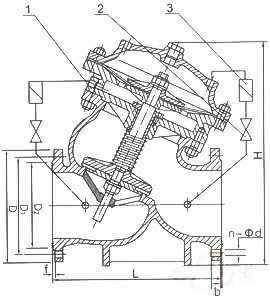 JD745X多功能水泵控制阀由主阀和调节阀及接管系统组成,阀体采用直流式阀体,主阀控制室为膜片式或活塞式的双控制室结构,控制室比一般水力控制阀增加了一个,增加了对主阀的控制功能,实现了对水泵出口的缓慢开启、全开、缓闭、截止等多功能控制,实现了一个阀门、一次调节对水泵出口的多功能控制。