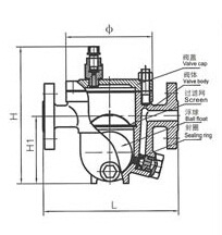 该阀利用浮力原理,浮球根据凝结水量的多少随水位的变化而作升降,自动调节阀座孔的开度,连续排放凝结水。当凝结水停止进入时,浮球靠自重降到底部,关闭排水阀座孔。由于排水阀座孔在凝结水位以下,水汽自然分离,形成水封,达到无蒸汽泄漏。
