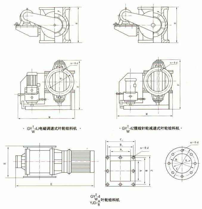 A(A1) | B(B2) | C(C1) | n-φd | H | M | F | E | GYW-4 | GYW-4Z | GYW-4J |
